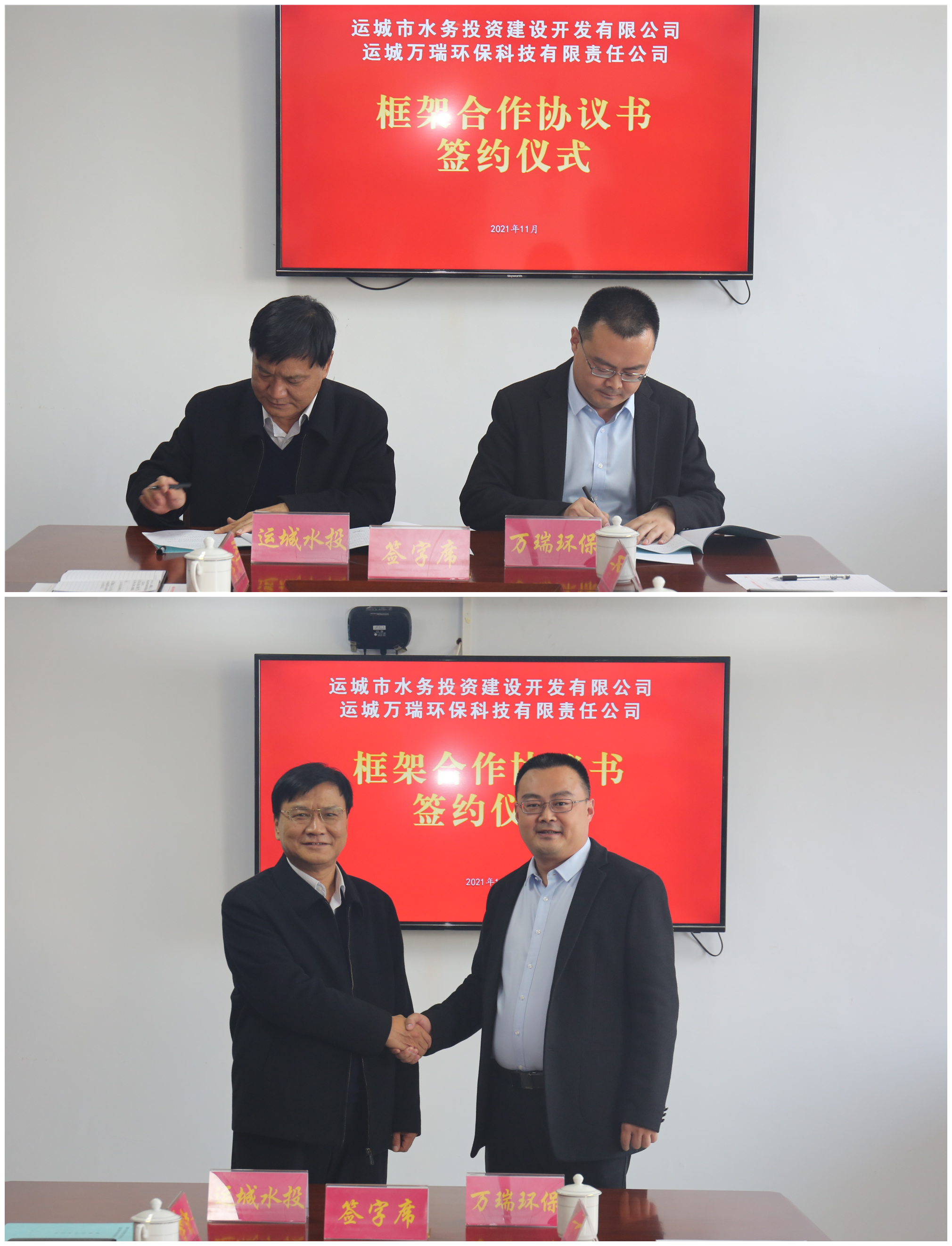 11月5日,運(yùn)城市水務(wù)投資建設(shè)開發(fā)有限公司(以下簡稱市水投公司)與運(yùn)城萬瑞環(huán)保科技有限責(zé)任公司(以下簡稱萬瑞環(huán)保公司)框架合作協(xié)議簽約儀式,在市水投公司隆重舉行。