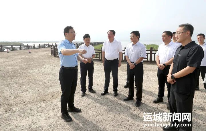 在鹽湖22號(hào)堤埝,丁小強(qiáng)詳細(xì)了解堤埝除險(xiǎn)加固及生態(tài)修復(fù)項(xiàng)目(二期)建設(shè)情況,并沿著環(huán)湖漫道,實(shí)地查看江道疏浚、堤埝除險(xiǎn)加固、生態(tài)修復(fù)等工作進(jìn)展情況。他指出,要在保持鹽湖生態(tài)機(jī)理的基礎(chǔ)上,扎實(shí)抓好鹽湖生態(tài)保護(hù),統(tǒng)籌推進(jìn)濕地恢復(fù)、水系連通、物種保護(hù)、堤埝除險(xiǎn)加固等工作,進(jìn)一步厘清鹽湖生態(tài)價(jià)值和歷史文化價(jià)值本底,最大限度恢復(fù)鹽湖生態(tài)系統(tǒng)的自我修復(fù)功能。要市區(qū)一體、部門(mén)聯(lián)動(dòng),完善道路、綠化等基礎(chǔ)設(shè)施建設(shè),同步推進(jìn)周邊村莊、建筑外立面、垃圾清理等環(huán)境綜合整治,加快恢復(fù)“五步制鹽”展示區(qū),全力打造山水相融的人文自然景觀。